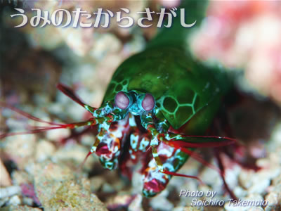 ハデハデな色と柄のモンハナシャコ。