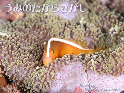 セジロクマノミが、イソギンチャクのベッドの中から